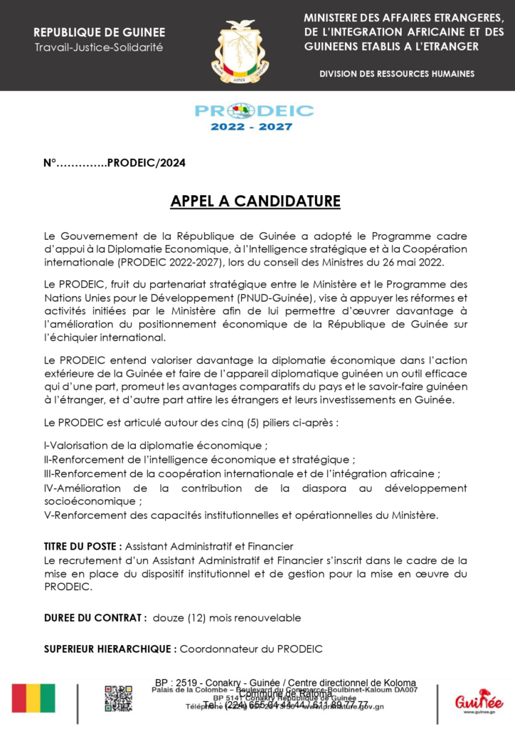 Annonces Appel à candidature pour le poste d’Assistant Administratif et Financier 1 décembre 2024 12 h 01 min Téléchargez l’avis complet en PDF