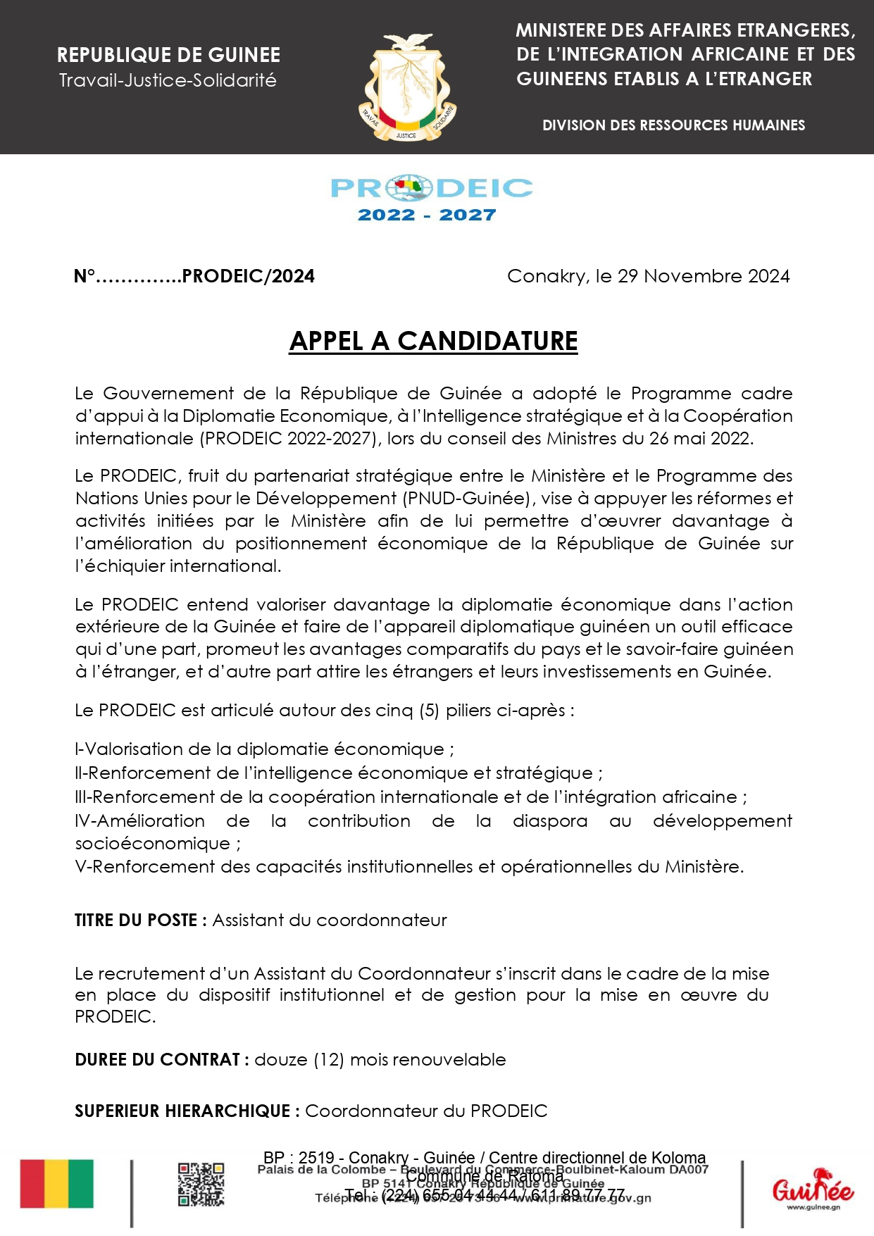 Annonces Appel à candidature pour le poste d’Assistant du coordonnateur 1 décembre 2024 11 h 47 min Téléchargez l’avis complet en PDF