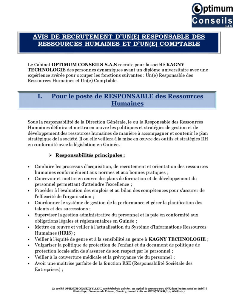 Annonces AVIS DE RECRUTEMENT D’UN(E) RESPONSABLE DES RESSOURCES HUMAINES ET D’UN(E) COMPTABLE 24 février 2025 14 h 13 min Téléchargez l’avis complet en PDF