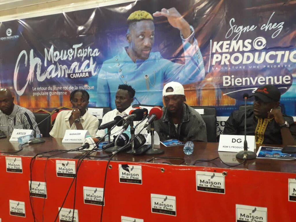 Moustapha CAMARA connu de son nom Chamack était devant la presse ce mardi, 05 mars 2024, à la maison de la presse de Conakry. Au cours de cette conférence de presse , Chamack a signé un nouveau contrat pour une durée de quatre ans avec sa nouvelle maison de production KEMS PRODUCTION.